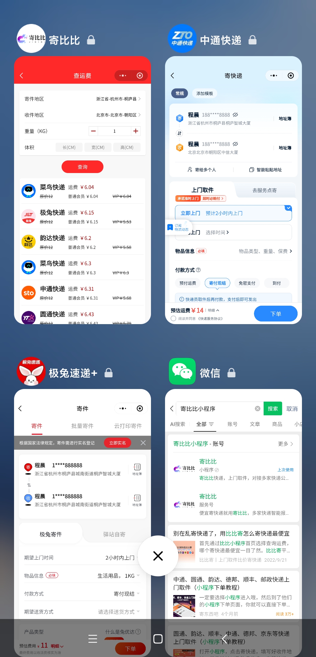 对比项 | 驿站寄件 | 寄比比(小程序) |